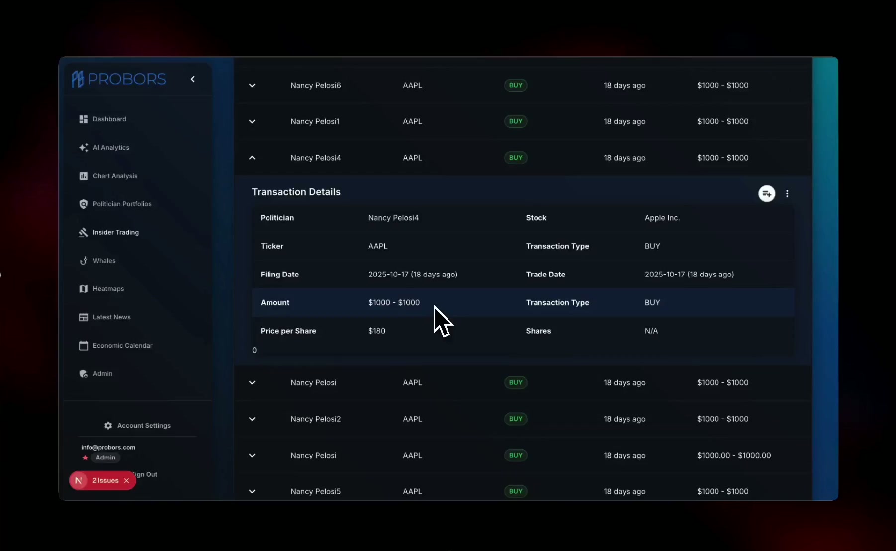 Don't wait 45 days to see what members of Congress are buying and selling. ProBors tracks insider and congressional filings the moment they're published, with: